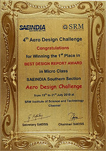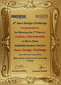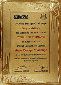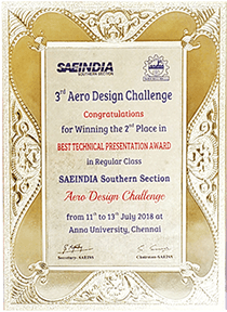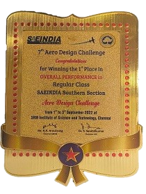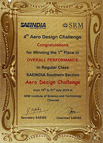 The team successfully secured #1 rank for the nation in Overall Performance in Regular Class category out of 146 teams which was their 2nd participation in the Competition and in their debut of Micro Class category the team secured #3 and also were awarded Best Technical Design Report. Thus bagging overall cash prize of 1.5 lakh rupees.